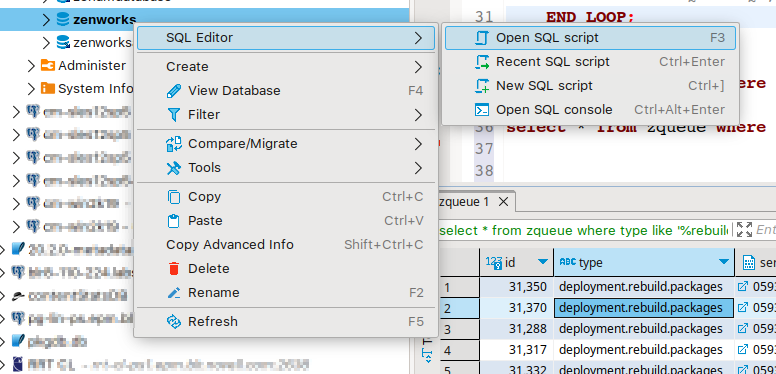 The following section explains how to use DBeaver with ZENworks zone database to query and export the data into a CSV file.