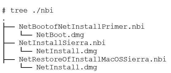 NOTE:Ensure that the NBI folder (Eg:NetInstallSierra.nbi) name where the files are copied in the TFTP and HTTP/NFS servers should have same name. The path to the ‘.dmg’ file will be derived based on the name of the nbi folder in ‘<tftp>/apple’ folder. Giving a different name will cause the download to fail.