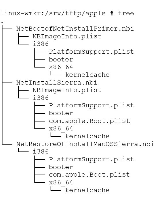 • Linux: /srv/tftp/apple