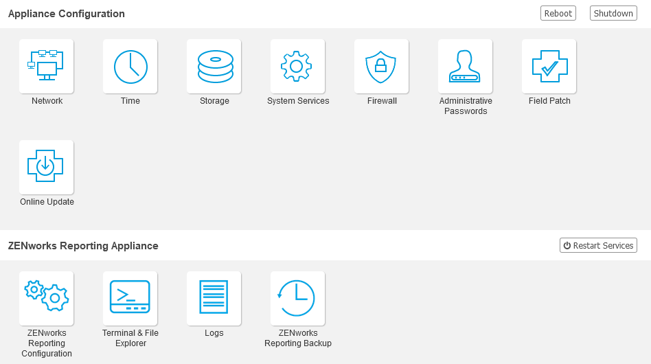 Figure 6-1 Appliance Home page (after configuring ZENworks Reporting)