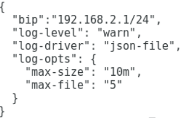 2. Modify the daemon.json file available in the /etc/docker/, and add the line "bip":"<IP_address>", to the start of the file, as shown in the below image:
