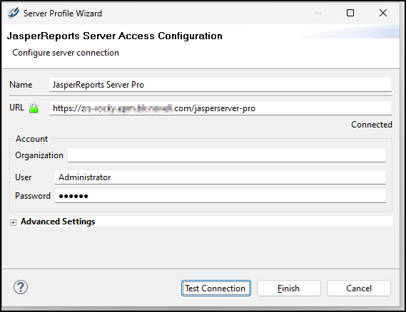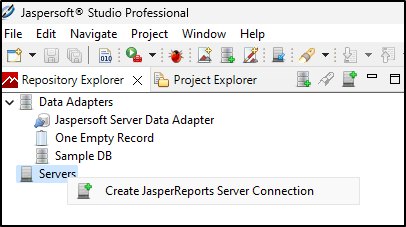 In the Repository view, right-click Servers, then click Create JasperReports Server Connection.