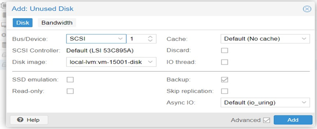 In the Add Unused Disk dialog box, click Add to add the .vmdk file that you imported to this virtual machine using disk import command in Step 4.