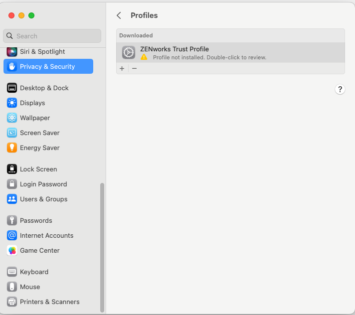 Double-click ZENworks Device Enrollment Profile. The ZENworks Device Enrollment Profile contains the MDM profile required for ZENworks to manage the device.
