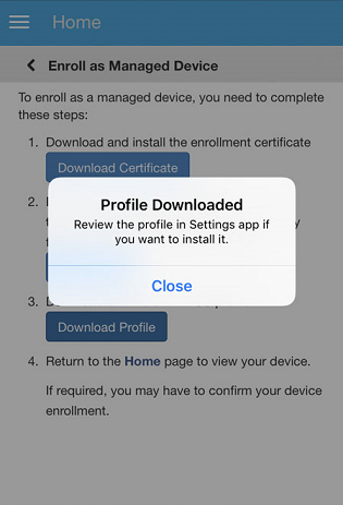 NOTE:If you are enrolling an iOS 12.1.2 or older device, on clicking Download Certificate, you will be navigated to the Install Profile screen. Click Install and follow the prompts to install the profile.