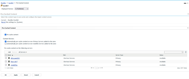 If the Administrator clears the pre-cached content types, the content gets created only on the server in which ZENworks Control Center is launched and it will not be replicated or pre-cached to the rest of the Primaries and Satellites, and the content gets distributed only through ondemand mode based on the requests from the manage devices.