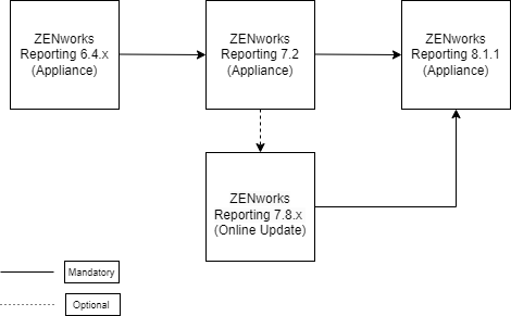 NOTE:If you are migrating from ZENworks Reporting 6.4.x, you need to first migrate to 7.2, and then migrate to ZENworks Reporting 8.1.x.