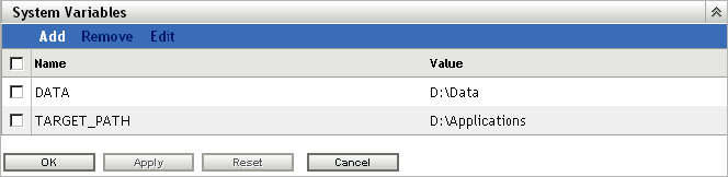 System variables are used to define paths, names, and other items in your system. In addition to the predefined variables, Micro Focus recommends using variables in bundles. This makes it much simpler to create, manage, and deliver applications moving forward. You need to standardize on this early and stay with your standard.