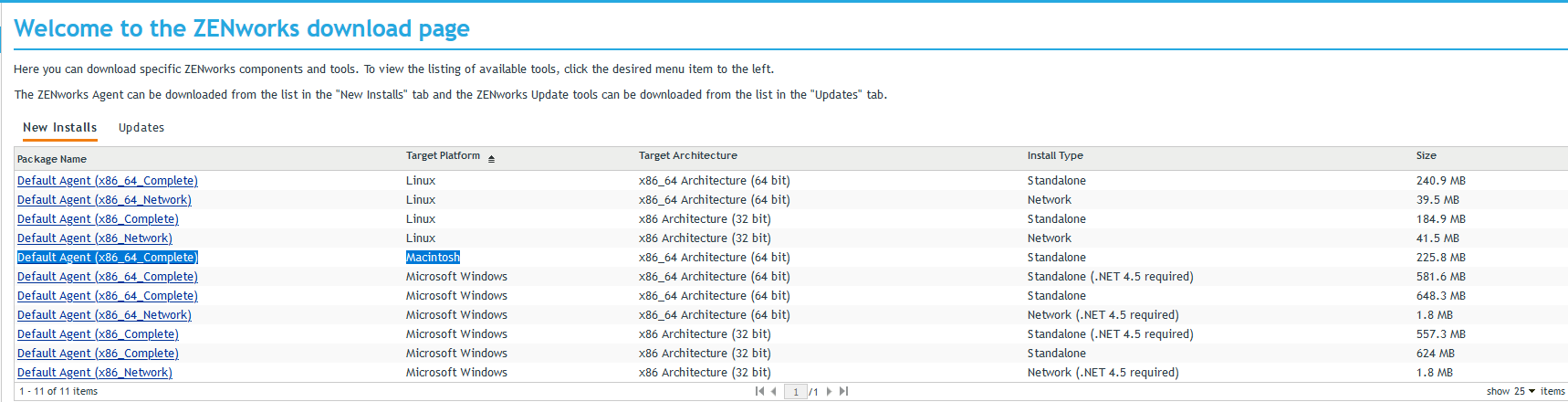 For Intel: ZENworksAgentInstaller.dmg which is available as IntelAgentInstaller.app