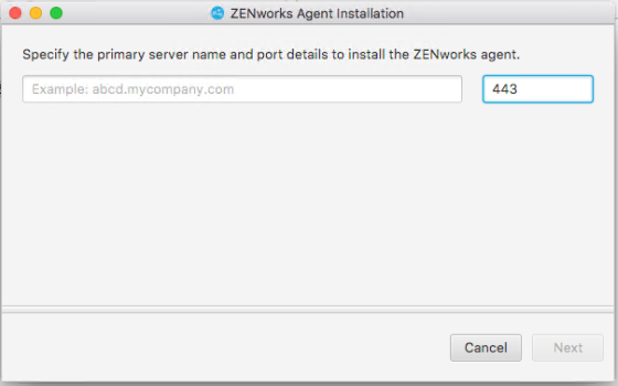NOTE:If you are installing the agent on a Mac device using VMware Fusion, then a blank page might be displayed. Installing the agent using a virtual machine is not supported.