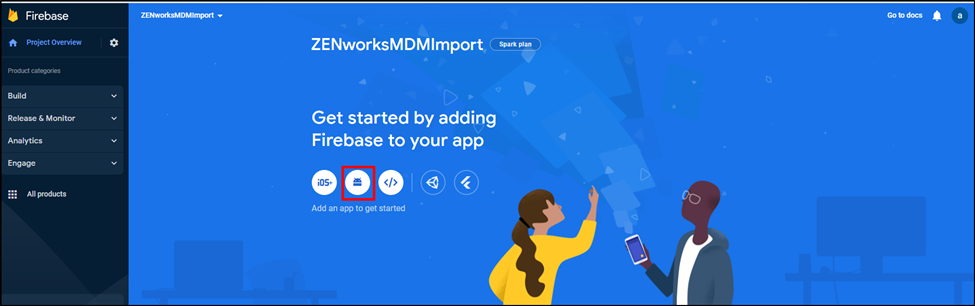 To connect to the FCM service, you need to create a Firebase project in the Firebase console and obtain a .JSON file (that contains the Project Number) and a Server Key. The .JSON file and the Server Key are then used to configure ZENworks’ access to the FCM service.