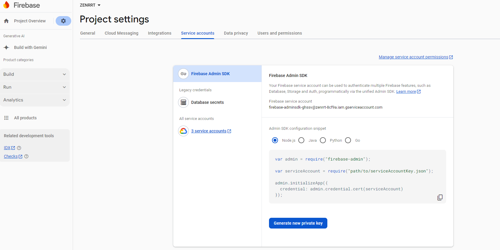 Select the Service accounts tab. Click Generate new private key. A Service Account JSON file will be downloaded.