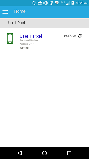 6. The ZENworks Agent App Home screen is displayed that shows the device as enrolled and active.