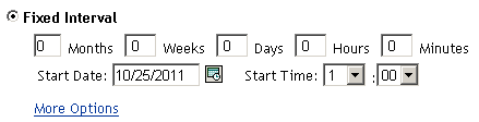 Fixed Interval: This option enables you to schedule a recurring deployment that runs after a fixed duration on a regular basis. You can choose the number of months, weeks, days, hours, and minutes of the interval and the start date for the deployment schedule.