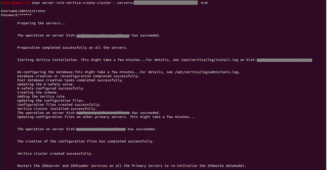 2. $ /opt/vertica/bin/admintools -t start_db -d zenworks -p <password>