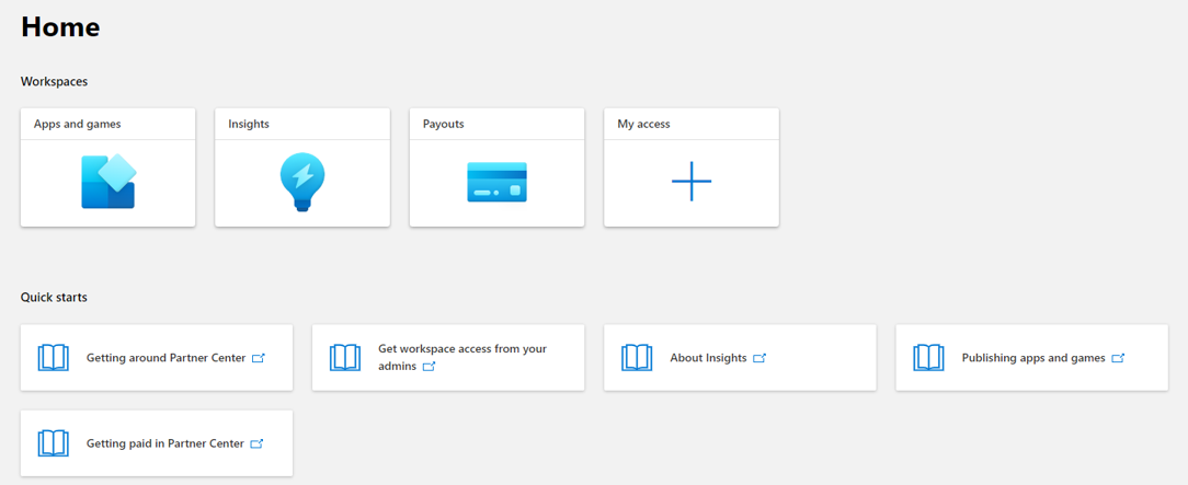 In Microsoft Partner Center, ensure that you are able to view Apps and Games tile. If the tile is not visible, then contact Microsoft Support.