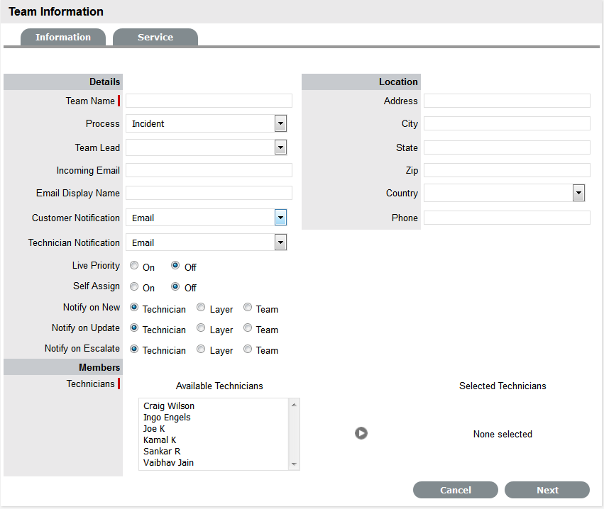 Highlight Technician names within the Available Technicians list and click the arrow icon to move the Users to the Selected Technicians list.