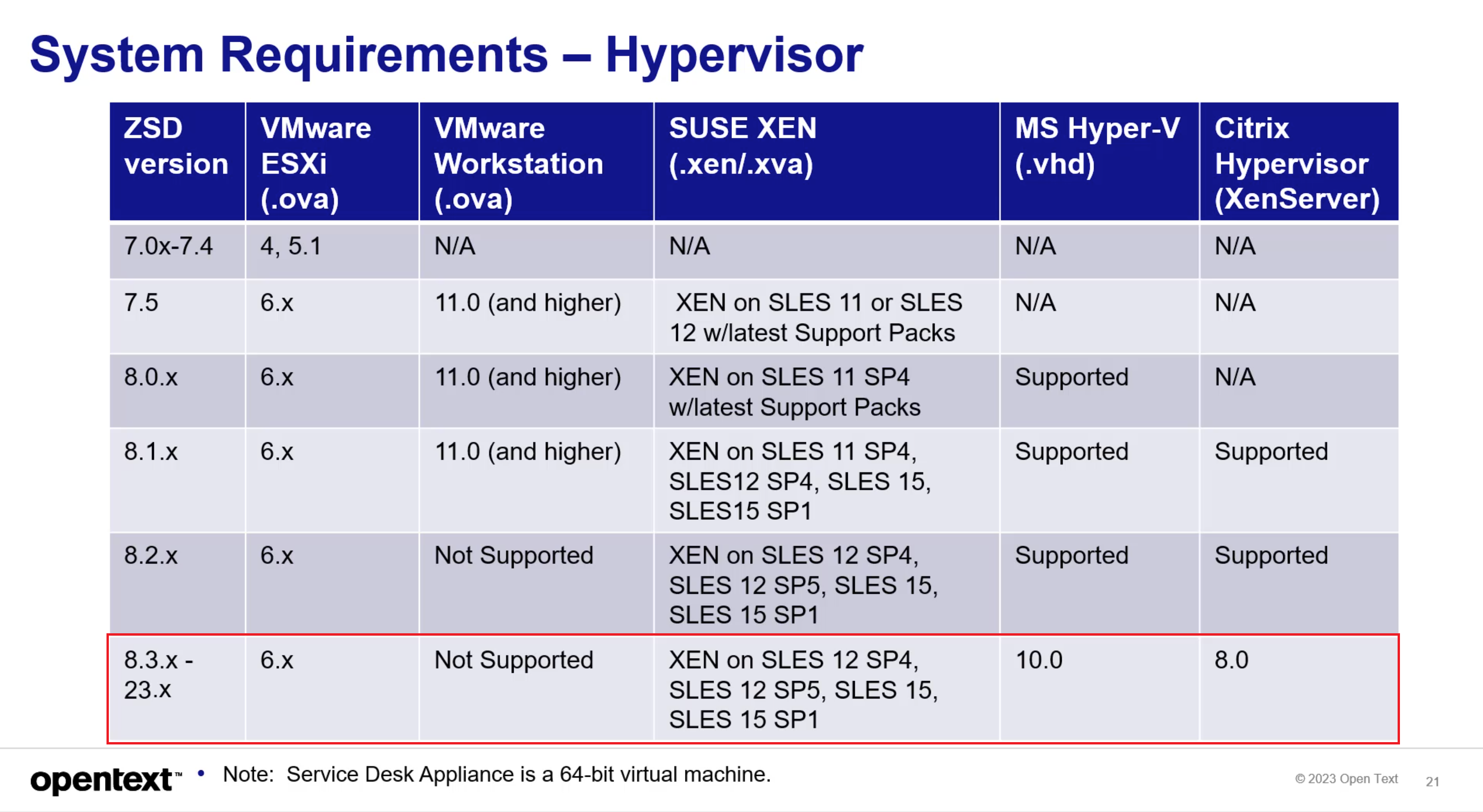 If you are using ZENworks Service Desk 7.5 or 8.0 version, then you need to migrate to 8.1.x and then to the ZENworks Service Desk 8.3.x version, or you can directly deploy ZENworks Service Desk 8.3.x and then upgrade to ZENworks 23.4. ZENworks Service Desk 23.4 is the latest available version.