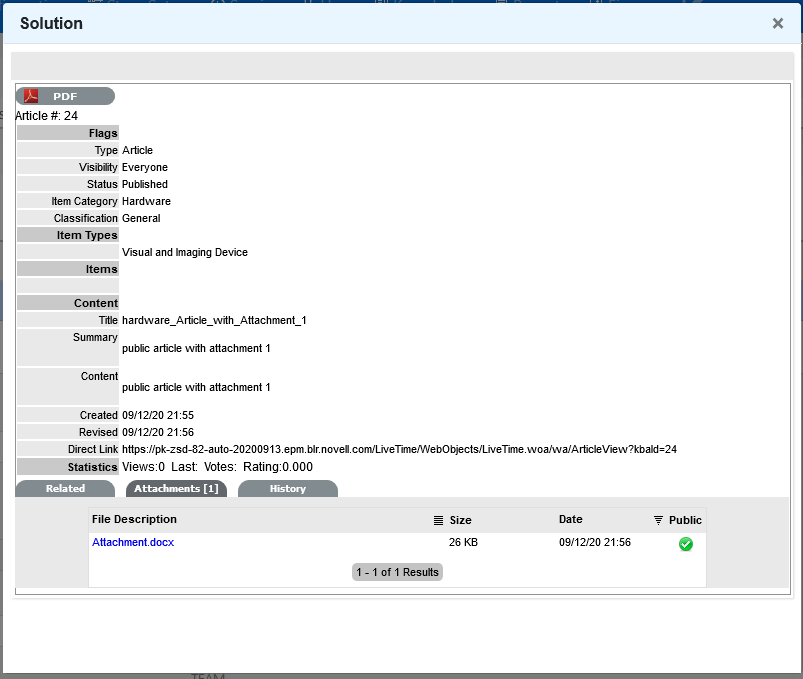 To view the details, you can click the Solution, Workaround or backout procedure. The article will be displayed in a pop-up window.