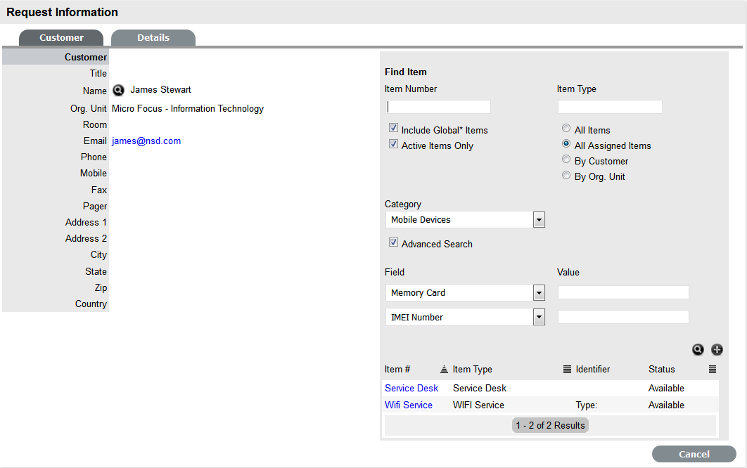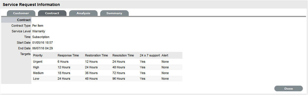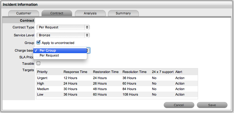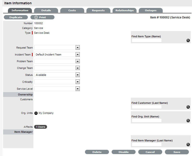 Associate the SLA to an Item or Customer or Org Unit. This final step ties all the elements together when a Service Request is created, as the SLA associated with the Item, Customer or Org Unit assigned to the Request determines the Workflow, Team and Technicians that are made available within the Service Request Information screen.