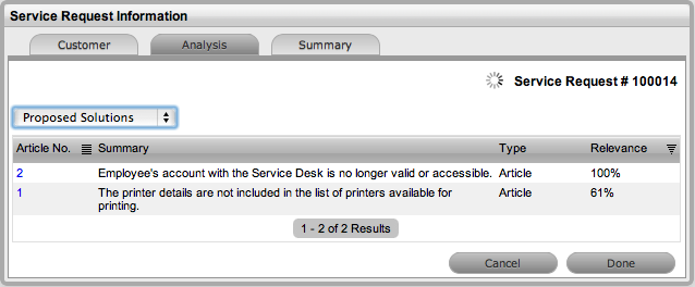 When Service Requests are raised for Service Item breakdowns, the system allows them to be easily associated with an Incident within the Analysis tab of the Request. Or, if the Service Request results in a change to an Item that is not in the Service Catalog, a Change Request can easily be generated within the Service Request.