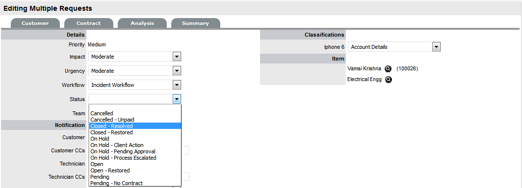 Set the Name, Item Type, Classification, Status, Priority and Description that best defines all associated requests