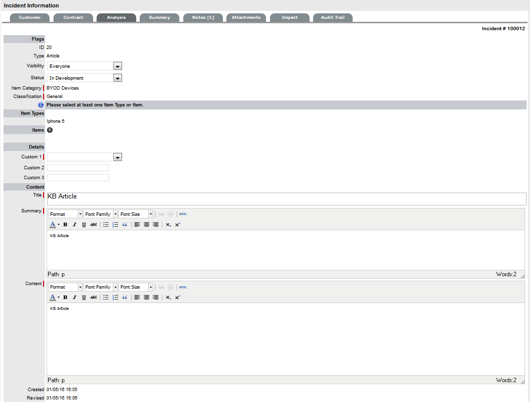 The system will confirm that the Solution has been assigned and a Known Error created.