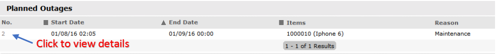 To view the Outage details, click the Outage No. link. To close the window, click Done.