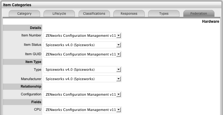 NOTE:Defining a source for the Item Type and Manufacturer is mandatory
