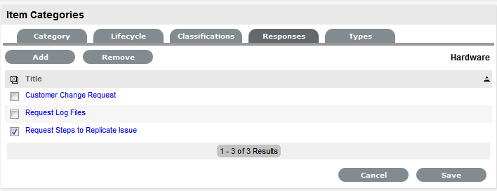 Within the Configuration>Categories Tab, edit the existing Service Category