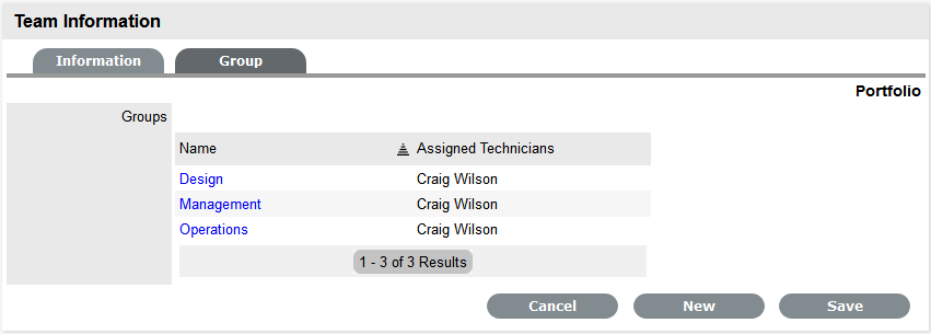 NOTE:When creating the Teams, it is suggested that the Group names reflect the stage of the Service Lifecycle, for instance Service Design, Service Implementation, Service Operation, Service Quality Control and Catalog Management.