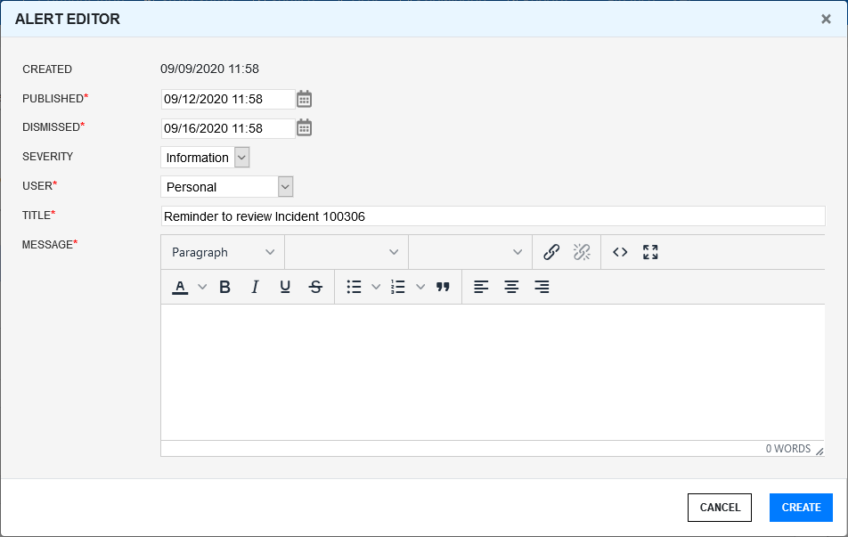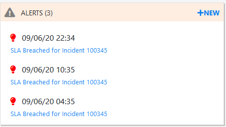Alerts are used by Administrators, Supervisors and Technicians to notify Users and Customers about important issues relevant to them or their environment. This panel displays the alerts associated with this request.