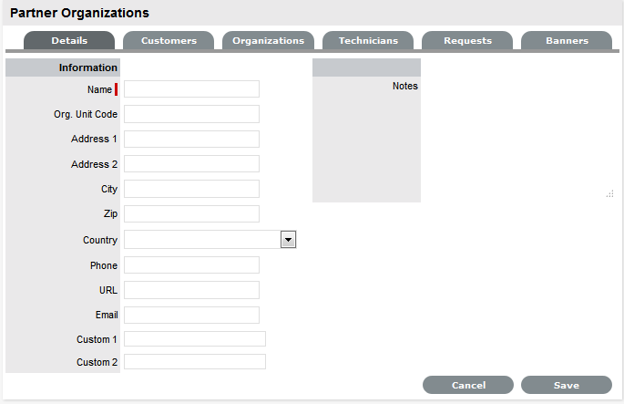 (The option is enabled by the Administrator in Setup Privileges> Use >Edit Customer Partner. The Partner Organizations are defined by the Supervisor in the User>Partner Organizations tab.)