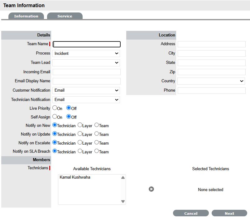 For example, a Frontline Support template may be created, where a User is assigned to Layer 1 of an Incident Team and a Work Group of a Service Request Team. They may also be assigned to an Update Customer Group within a Change Management Team. This template could then be easily applied to all Users created directly in the system, within the User Information screen. Or, if the User was created using an authentication server, the template could be applied within the Team tab of the User Information screen.