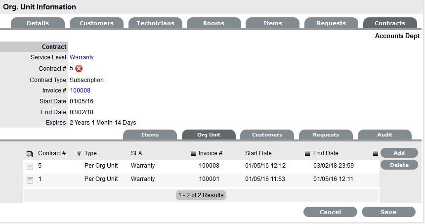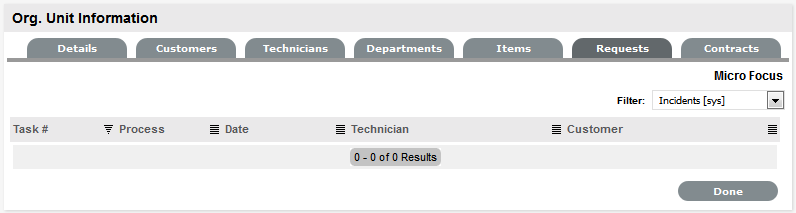 The Organizational Unit, be it a Company or Department with which the Customer is associated. (Organizational Units are created by the Supervisor, in Users >Organizational Units.) |
