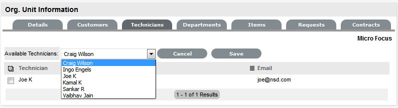 The Technician List consists of Users assigned the Release and/or Deployment Process in their User Information screen.