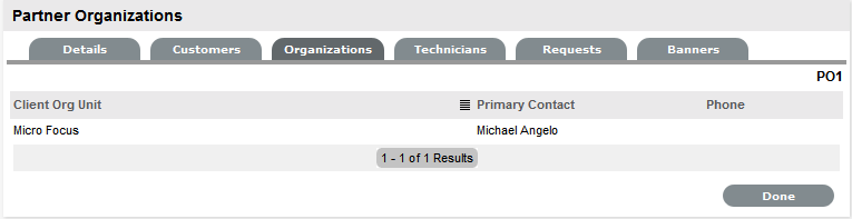Nominate the Partner Organization associate with the Customer. This is an external service provider who manages the Customer's request. (The option is enabled by the Administrator in Setup Privileges> Use >Edit Customer Partner. The Partner Organizations are defined by the Supervisor in the User>Partner Organizations tab.) |