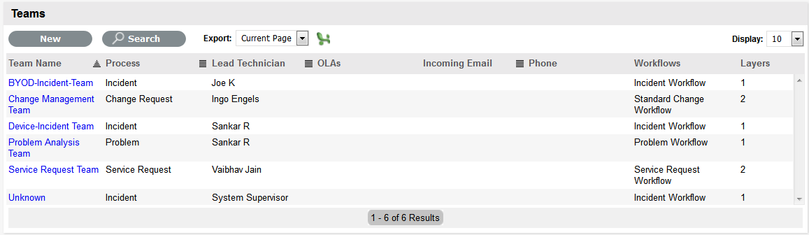 Enter a Name to find a specific Team, or leave the field blank to return a list of all Teams and click