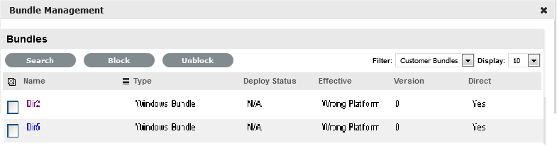 You can unblock the device-assigned bundles or customer-assigned bundles that have been blocked from being executed on a device.