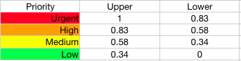 The following table displays the calculations applied by the system to the Item Criticality, which is mapped to a request's Impact to determine a request's Priority: