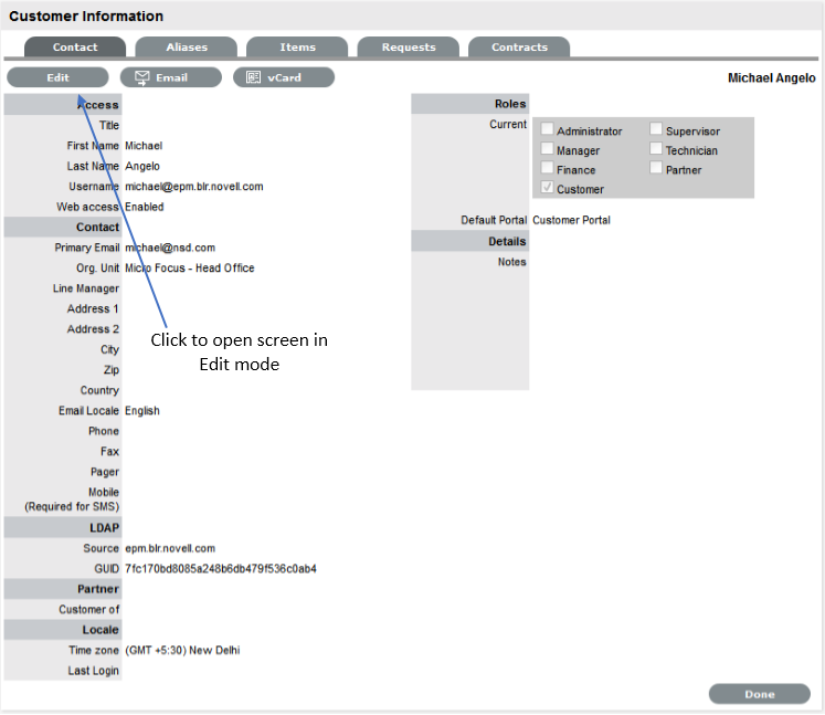 For instance, to edit a Customer, navigate to the User>Customers section and click on the Customer name hyperlink. This will open up the Customer's details screen.