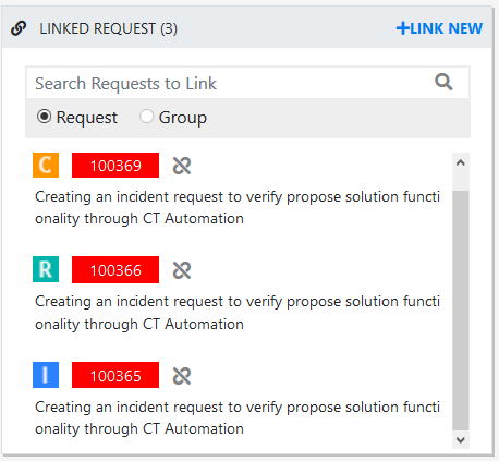 NOTE:If the current requests is part of a group, then linking with group, or with existing request that is part of another group is not applicable.