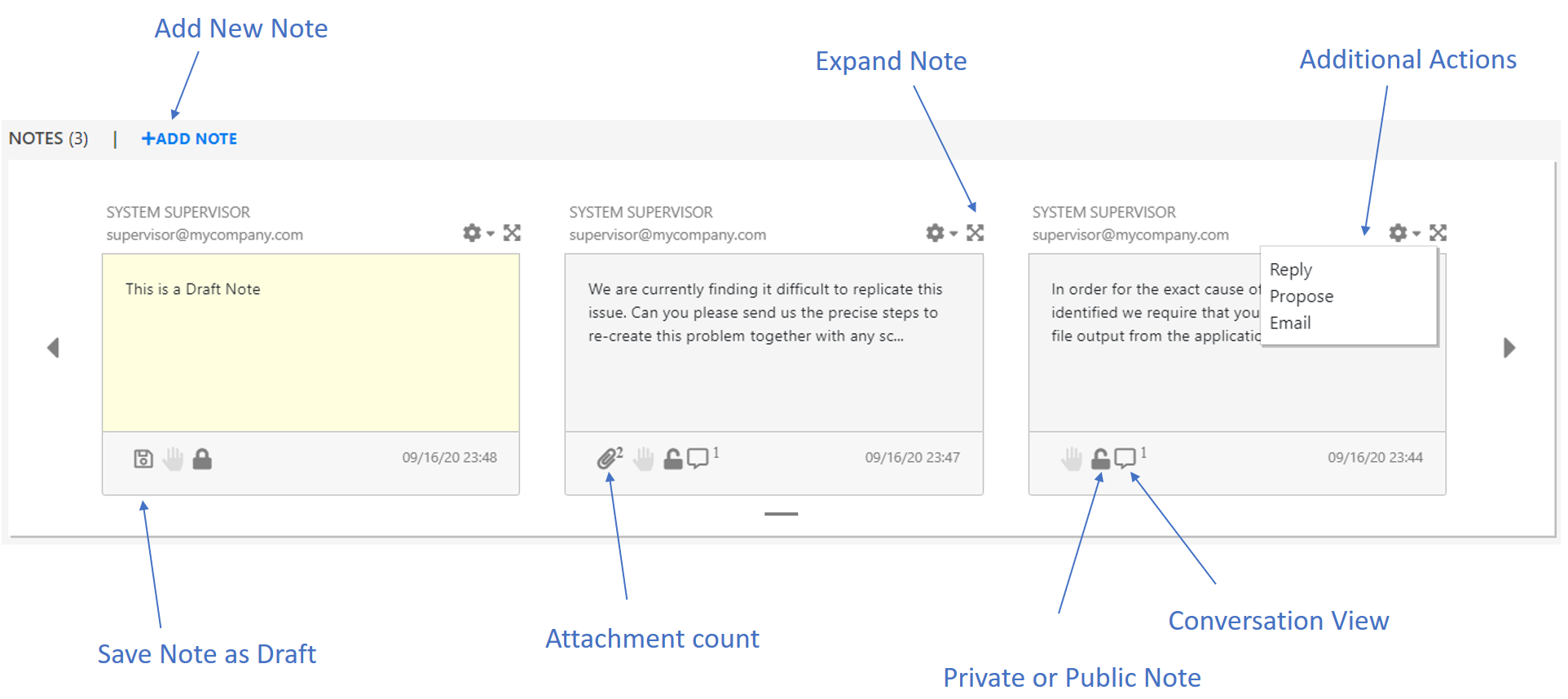 For more information on Adding Note, see the Section 2.7.5, Add Note section. |