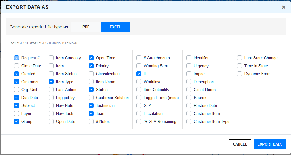 NOTE:By default, the displayed column in the list view will be selected while exporting the data. |
