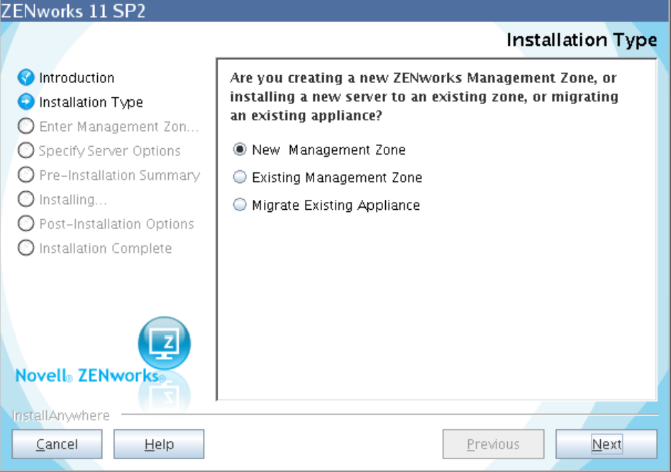 For ZENworks 11 , a database must be installed. The database options are displayed only during the first server installation in the zone. However, you can run the installation program specifically to install or repair a database (see You have the following database options: