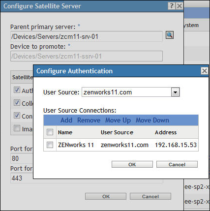 As shown in Table 4-2, Satellite Roles, a majority of roles can be hosted by a Satellite device. The ZENworks Authentication role was previously restricted to ZENworks Primary Servers. However, the role has been available on Satellite devices from ZENworks 10 SP3 Configuration Management or later. Configuring the Authentication role on a Satellite device allows for additional connections to be made to an eDirectory or Active Directory user source through a device that is local to the devices at a given location. For example, a customer using eDirectory will most likely create partitions dedicated to the resources for a given site and store a replica of the partition on a local server.