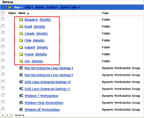 Using ZENworks Control Center, you can manage devices by performing tasks directly on individual device objects. However, this approach is not very efficient unless you have only a few devices to manage. To optimize management of a large number of devices, ZENworks Configuration Management lets you organize devices into folders and groups. You can then perform tasks on a folder or group to manage its devices.