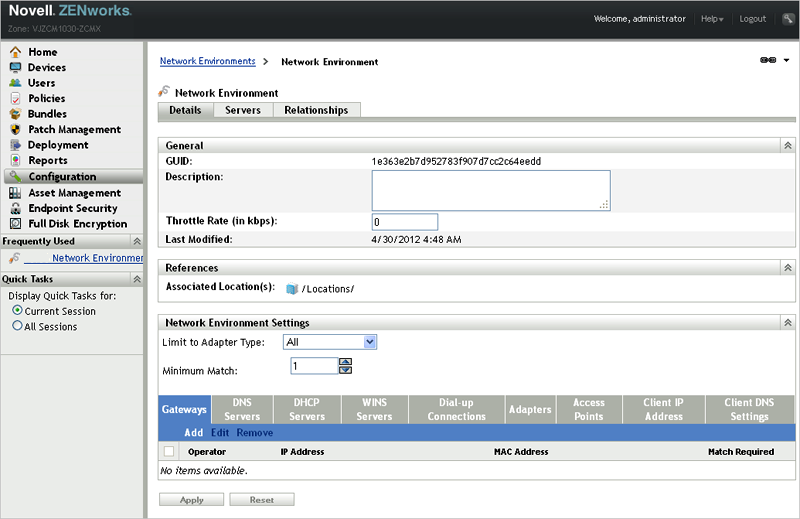 You configure and manage location Closest Server Rules in two primary places within ZENworks Configuration Management 11.