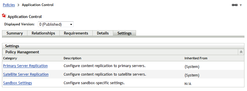 The following instructions explain how to override the content replication settings for an individual policy. For information about configuring content replication settings on a policy folder or the Management Zone, see Content