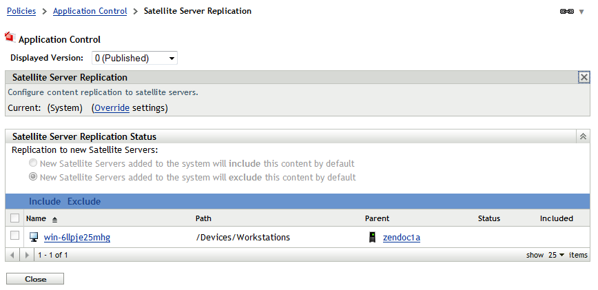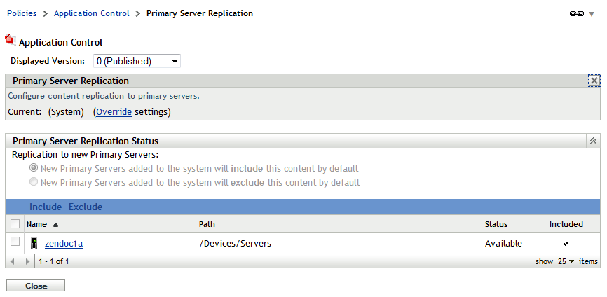 If you have multiple ZENworks Servers or Satellites functioning as content servers, you can choose to replicate a security policy to all content servers or selected content servers. If a security policy is not replicated to a content server, the policy is not available to any devices that connect to that content server for their policies.